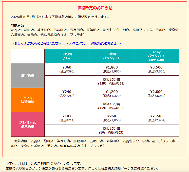 アクセアカフェを実際に使ってみた!料金と使い心地【名古屋市栄店】