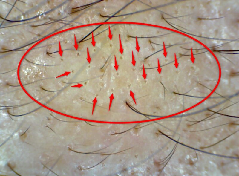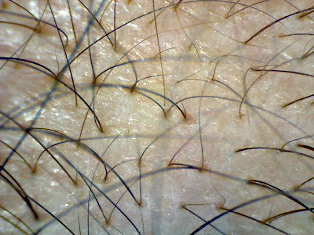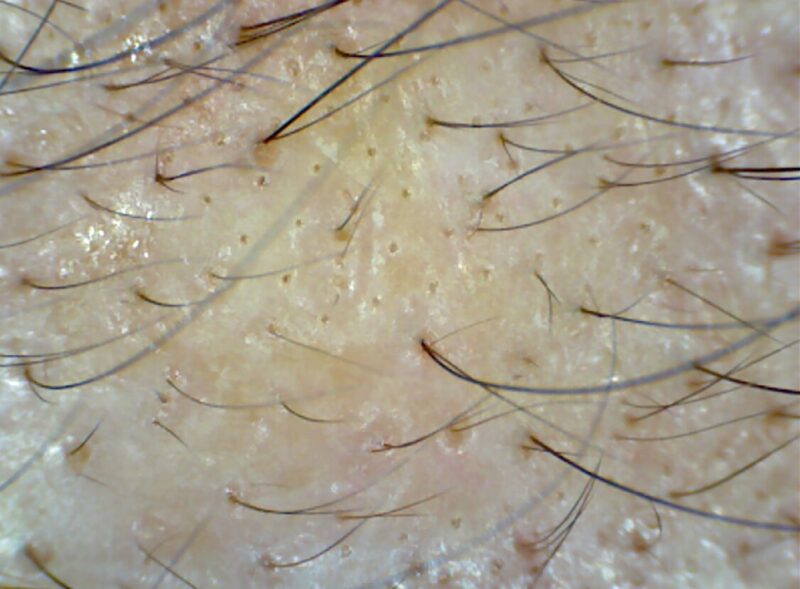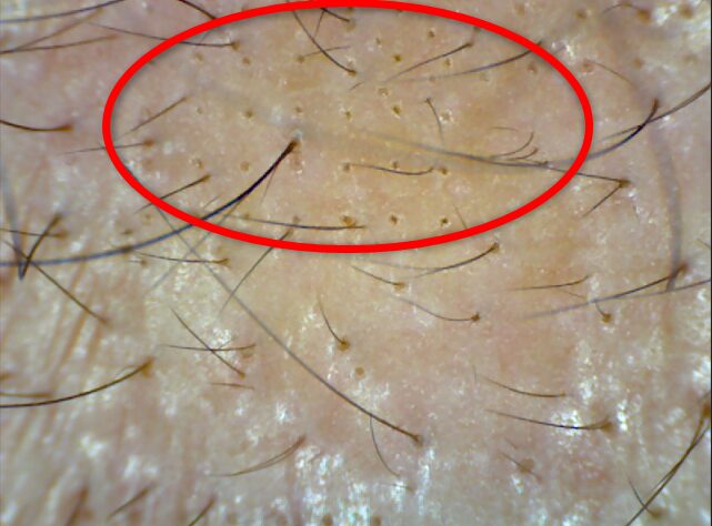 毛にコシを感じます。そして頭皮の画像をみるとなにやら小さな毛穴が。