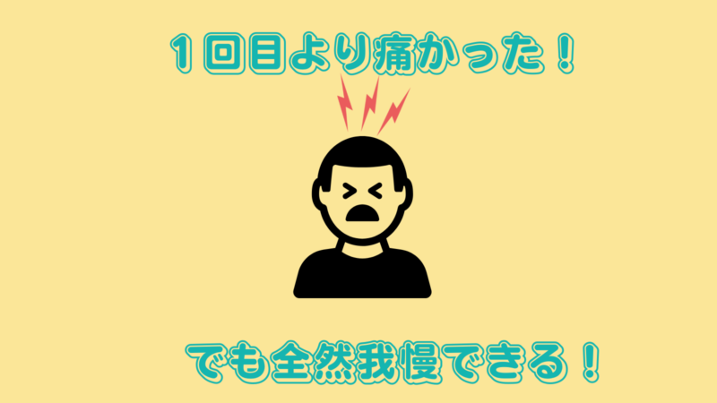 1回目は全然痛くなかったので(ぴりっと感じる程度)、2回目も同じだろうとタカをくくっていました。