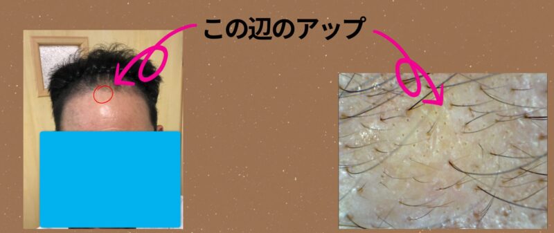 下の写真はおでこの真ん中の生え際付近の写真です。